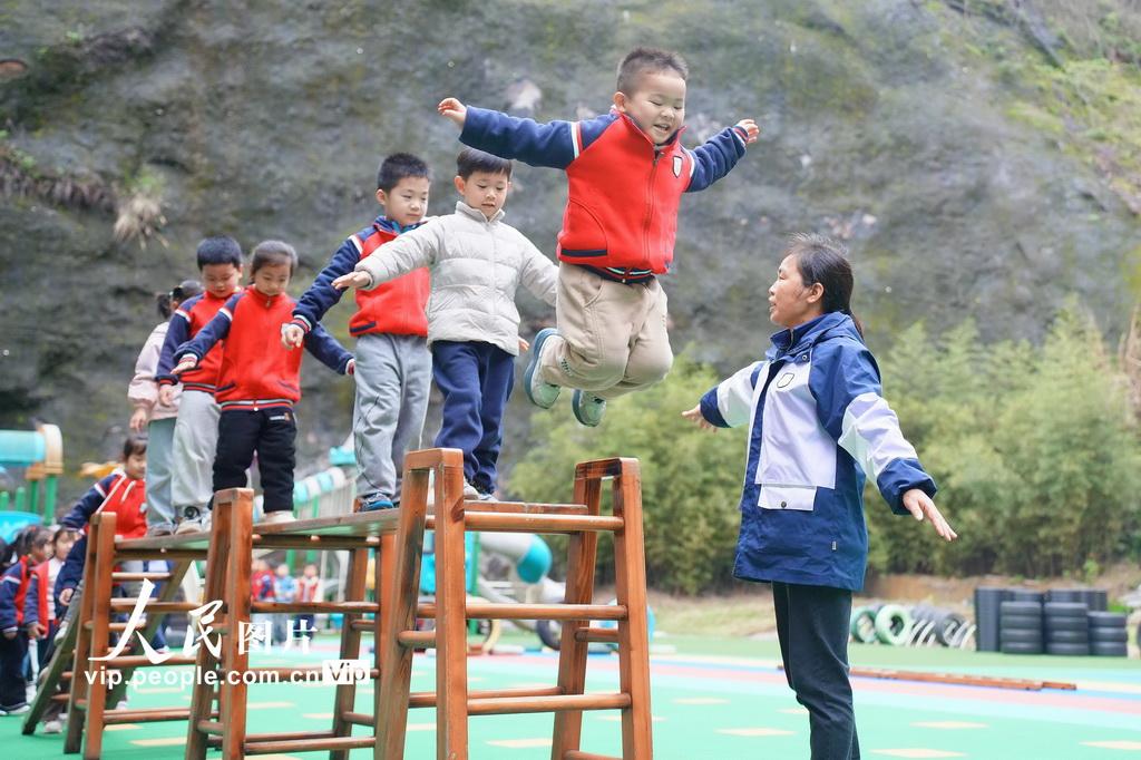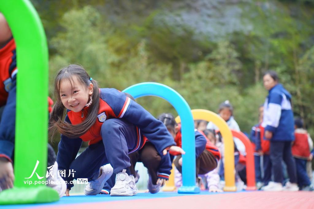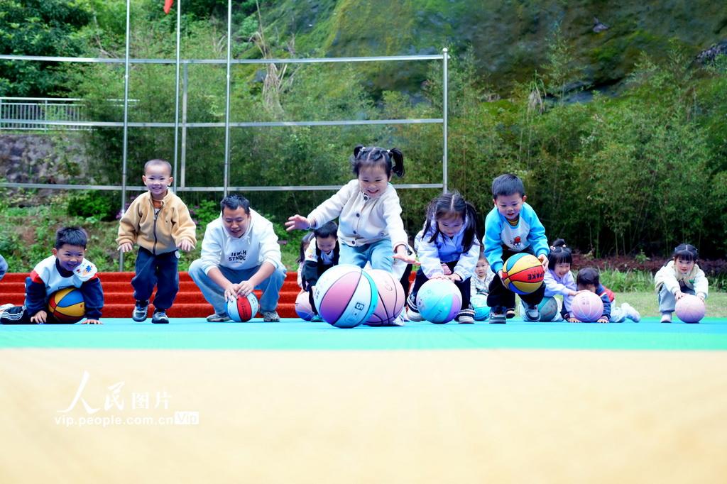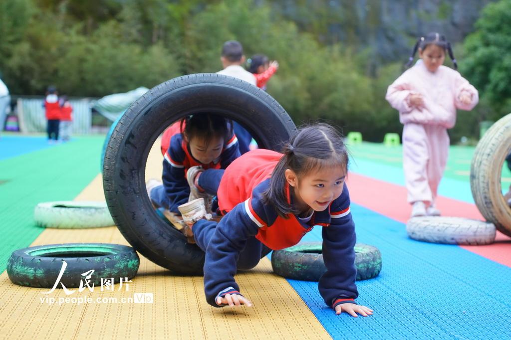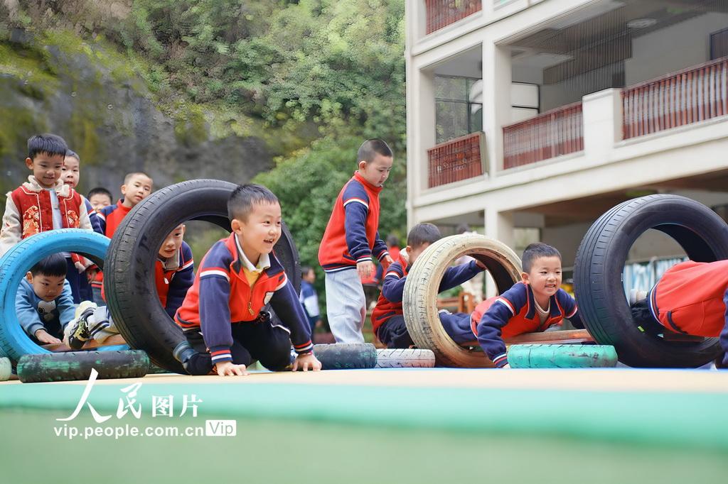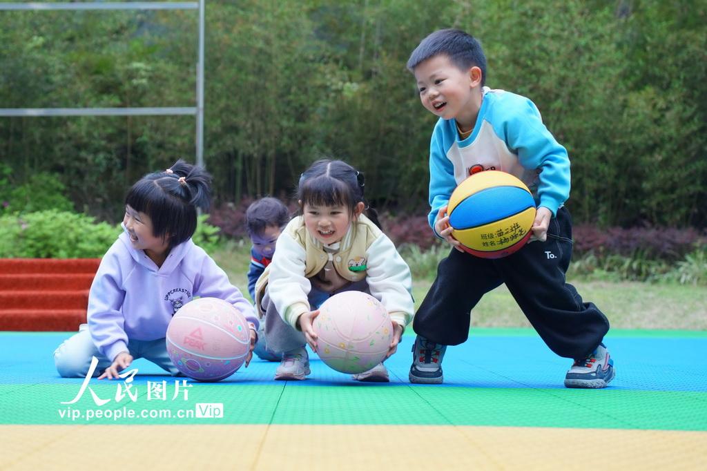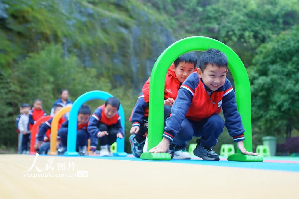 新学期以来,湖南省怀化市通道侗族自治县教育部门将“健康第一”理念全面融入学前教育全过程,通过丰富多彩的校园大课间、户外游戏、趣味体能等活动,让孩子们在运动中释放天性、增强体质,收获快乐。李尚引摄(人民图片网)